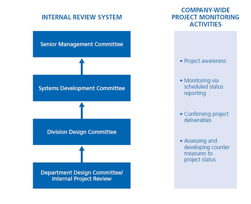 Each division of NRI is committed to quality control of system development, operations, and consulting services projects. In addition, NRI has established an internal review system for oversight and support of quality control activities for each division.