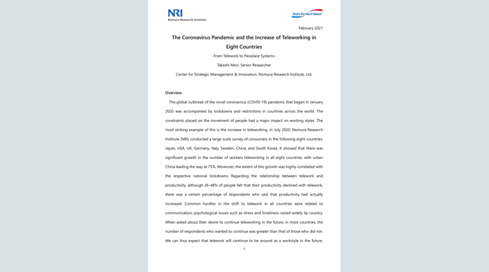 Soc. The Coronavirus Pandemic and the Increase of Teleworking in Eight Countries