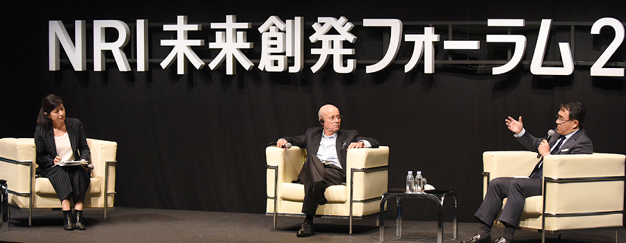 From left to right: Maoko Kotani, culture critic Jeremy Rifkin, and NRI President Shingo Konomoto