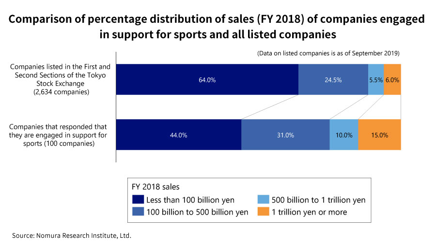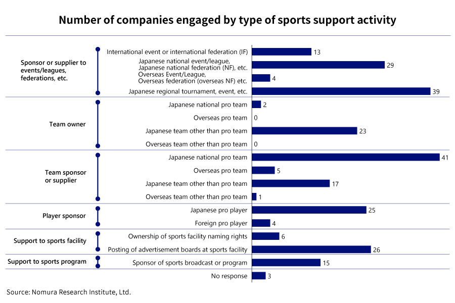 Misaki: Regarding the costs, we asked the companies if they are spending at least a total of one million yen (approximately 10,000 US dollars) on each of 17 efforts including support for international sporting events, support for teams, and support for players. There are many examples of companies giving small amounts of sponsorship money for local sports events at the level of branch stores and offices, but we set that figure as a benchmark of whether a certain amount or more was being spent on support at the company level.