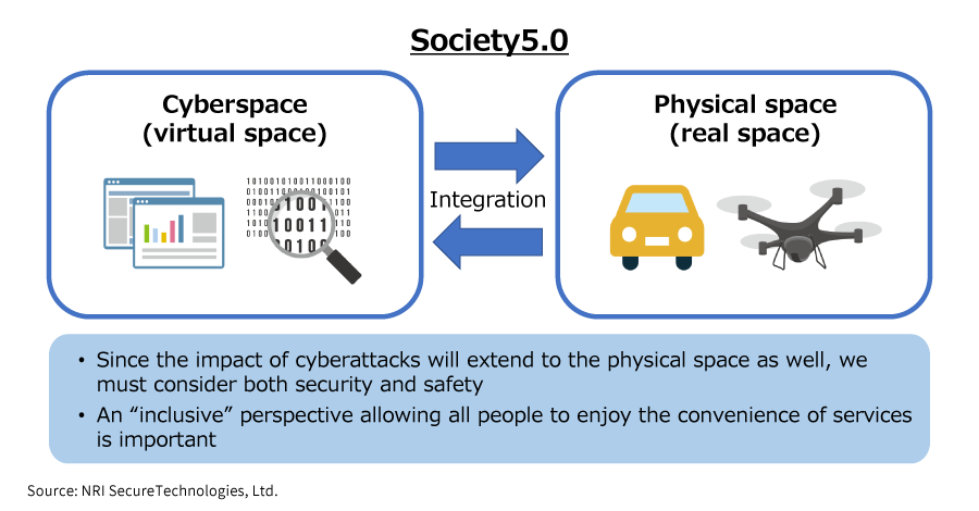 A system that highly integrates cyberspace and physical space is described as being the tool for realizing Society 5.0. However, Kimura indicates that new security risks will arise in such a system.