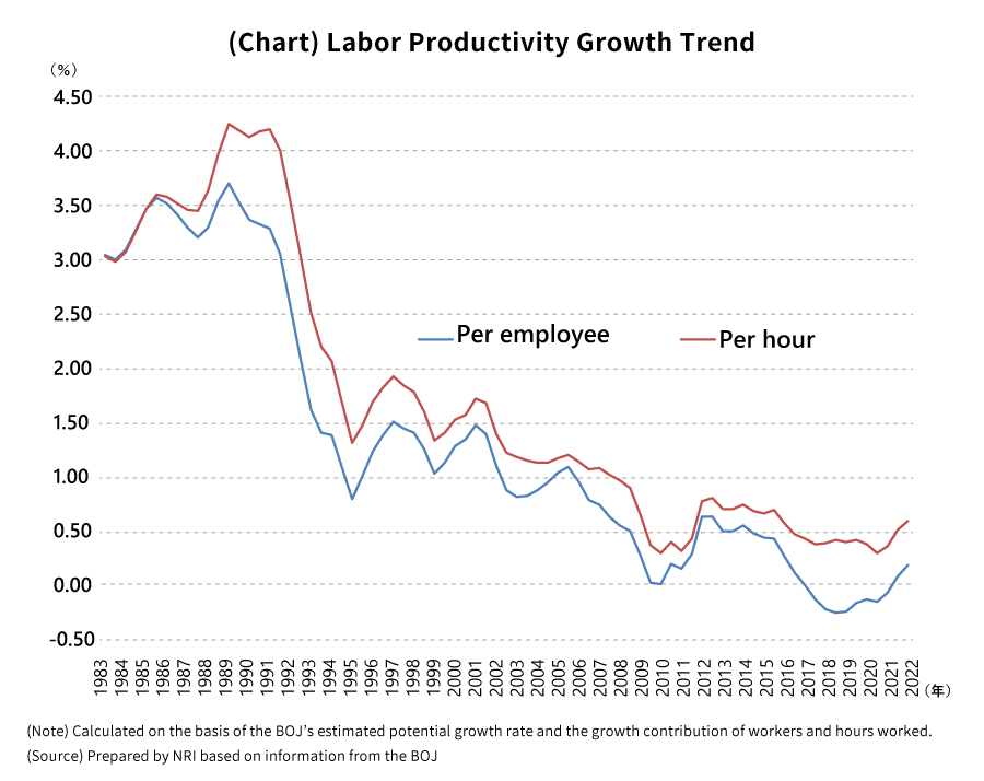 If we consider the labor productivity growth rate in the early 1990s, when the inflation rate trend was above 2%, it would seem that it would actually be difficult to achieve the 2% inflation target in a stable manner unless the rate of labor productivity growth exceeds 3%.