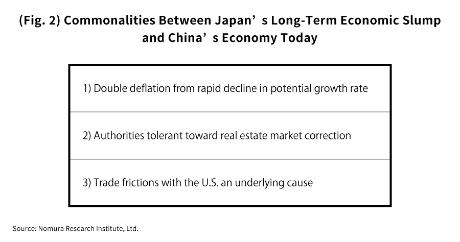 There are many apparent commonalities between Japan’s economy before and after the bursting of the bubble and China’s economy at present. Below are three such commonalities which I would like to observe (Fig. 2).