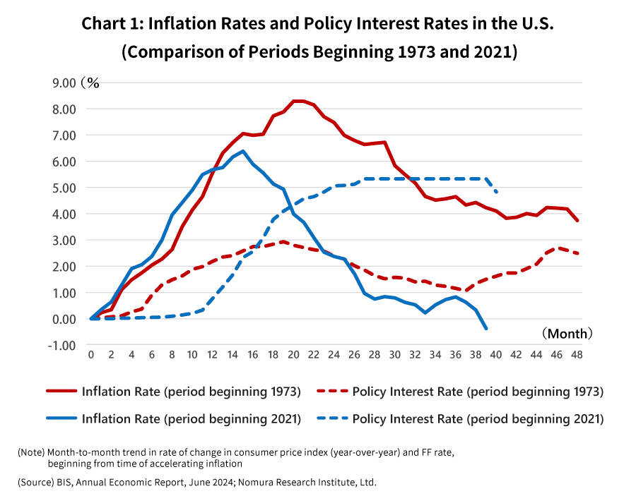 At a meeting of the Federal Open Market Committee (FOMC) held on September 18, 2024, the U.S. Federal Reserve Board (FRB) decided to lower the policy interest rate by 0.5%. This sizeable rate cut is the FRB’s first in four and a half years since March 2020, when the policy rate was abruptly lowered to zero in response to the Covid-19 pandemic. As a policy shift, the FRB’s move is a symbolic indication that the aims of the U.S. and world economies have transitioned from price stabilization to avoiding economic downturn. However, the rate cut also has created a historically anomalous situation, in which the fiscal policies of Japan and the U.S. are moving in opposite directions.