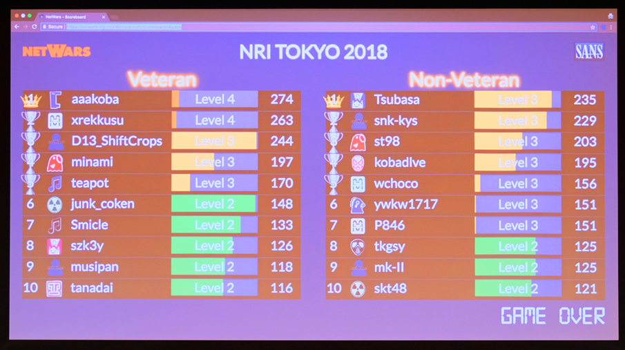 On August 17, 2018, a security contest called "SANS NetWars Tournament 2018" was held in Akihabara, Tokyo. NRI SecureTechnologies Ltd. (NRI Secure), a cybersecurity company, has been hosting the contest for youths annually since 2014, as part of an effort to increase the pool of cybersecurity professionals.