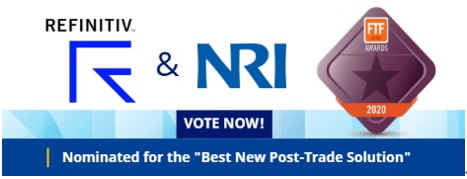 We’re thrilled to announce that NRI and Refinitiv we have been jointly shortlisted for the best new post trade solution at the FTF News Technology Innovation Awards 2020! It takes only a couple seconds to vote. Please visit the following page before the May 15th deadline and help us win!
