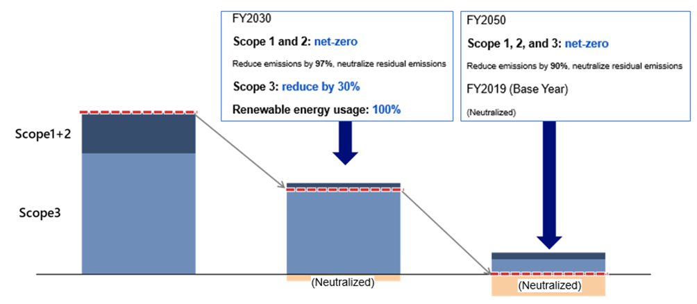 (Scope 1, 2, and 3) net-zero *(vs. FY2019) * Reduce emissions by 90%, neutralize residual emissions |
