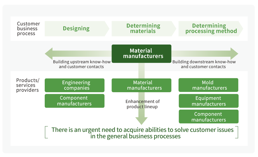 However, in most of the cases, it is outside the scope of material manufacturers; hence, customer values must be improved rapidly using the resources of other companies as well.
