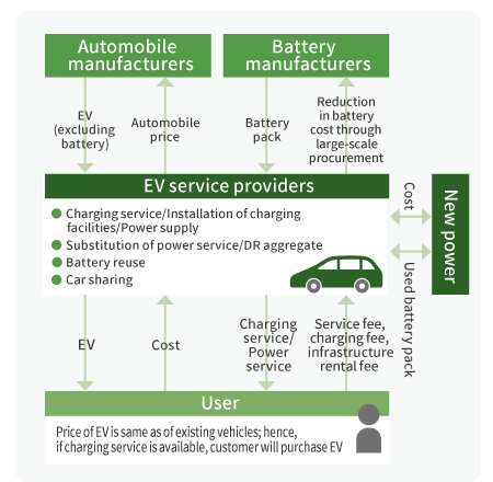 Since there is a limit to the cost reduction of batteries through technological development, it is required to make adjustments for substantial cost reduction of batteries through business innovations. Specifically, they can pass on lifecycle cost of battery on the user, by creating a used battery market, promoting reuse of batteries and making adjustments in power systems that are used in-vehicle batteries. Therefore, it is necessary to create a business model that solves these issues and verify and execute such model.