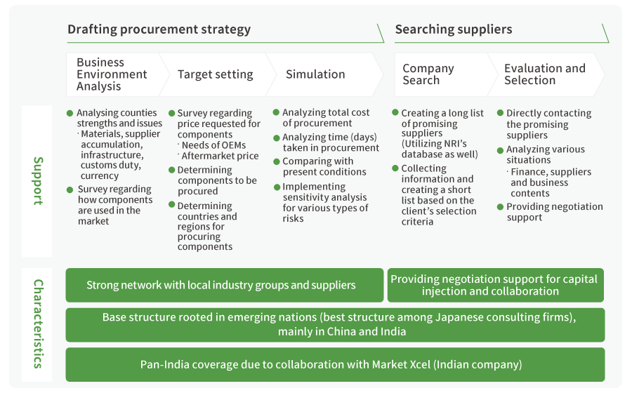 NRI provides comprehensive support for procurement reforms, from drafting a procurement strategy to exploring suppliers by utilizing the potential of emerging nations.