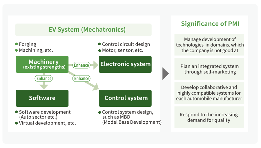 When a component manufacturer conduct M&A for the enhancement of Mechatronics for EVs, advanced PMI is required that leads to business development.