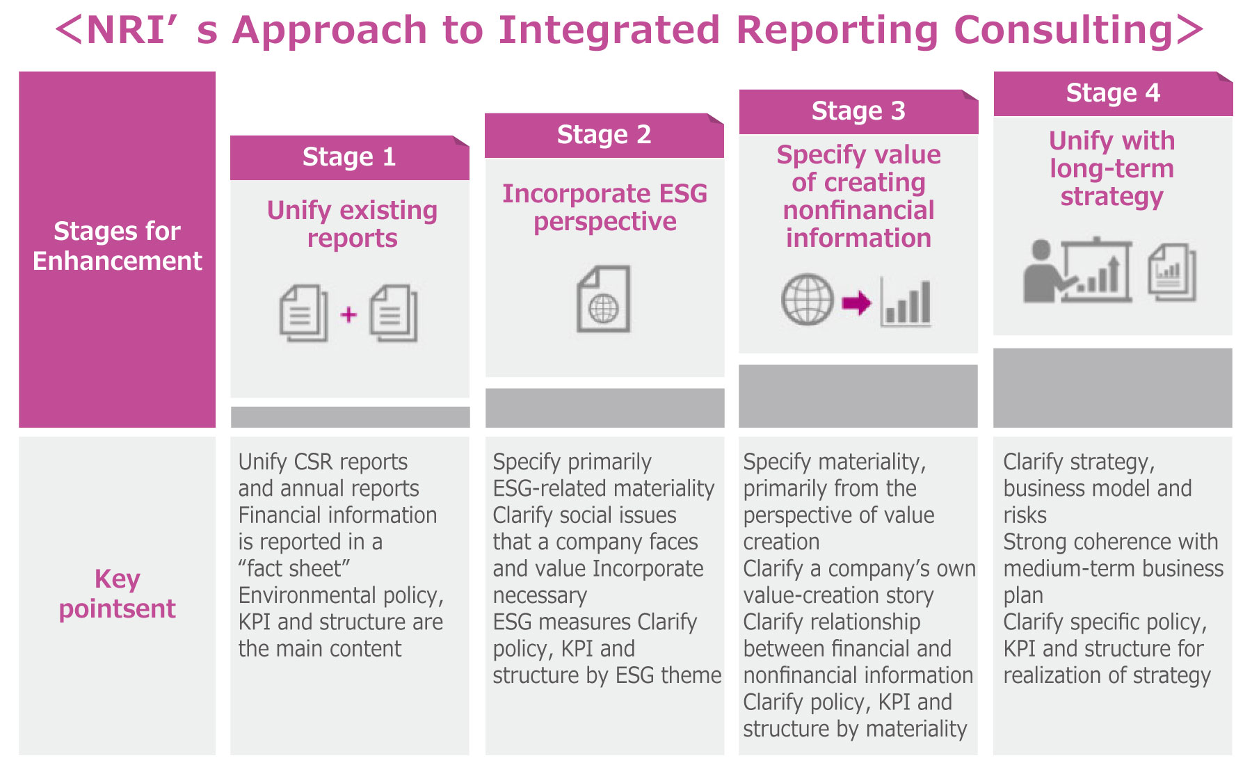 We at NRI provide strong support to clients with the goal of achieving integrated reporting based on