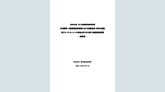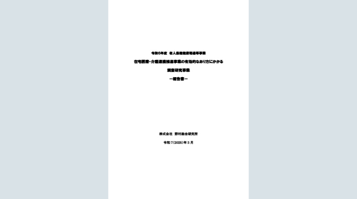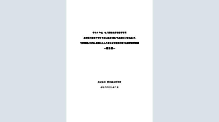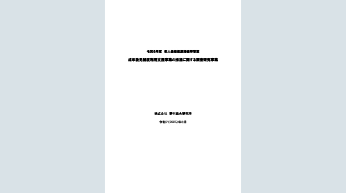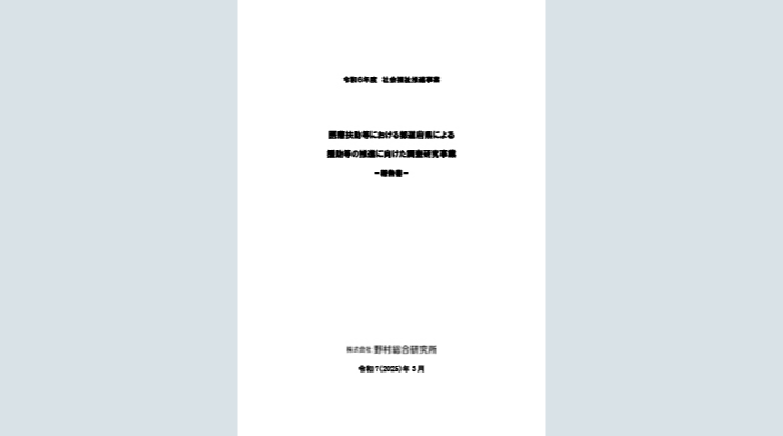 (株)野村総合研究所では、厚生労働省の補助金を受けて、老人保健健康増進等事業・社会福祉推進事業として下記の調査研究を実施しました。