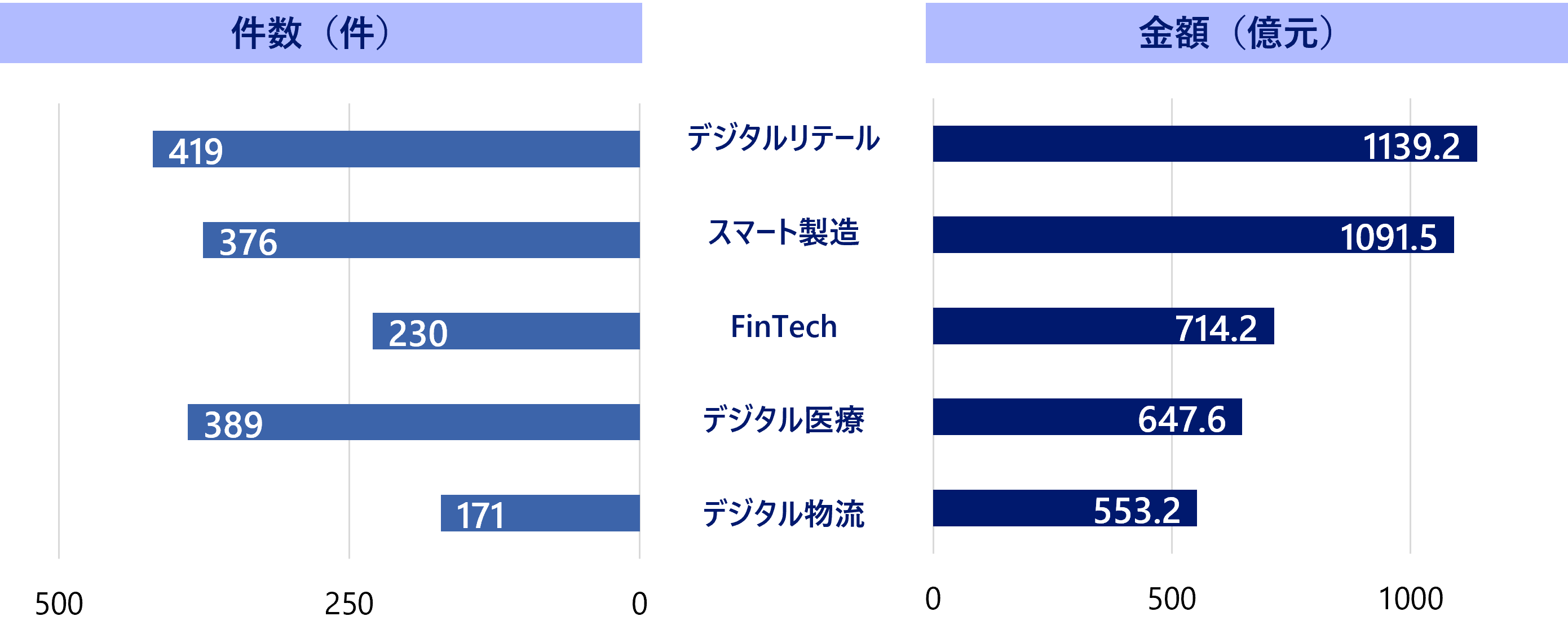 産業分野に対する投資傾向:デジタル医療とデジタル物流の増加が顕著