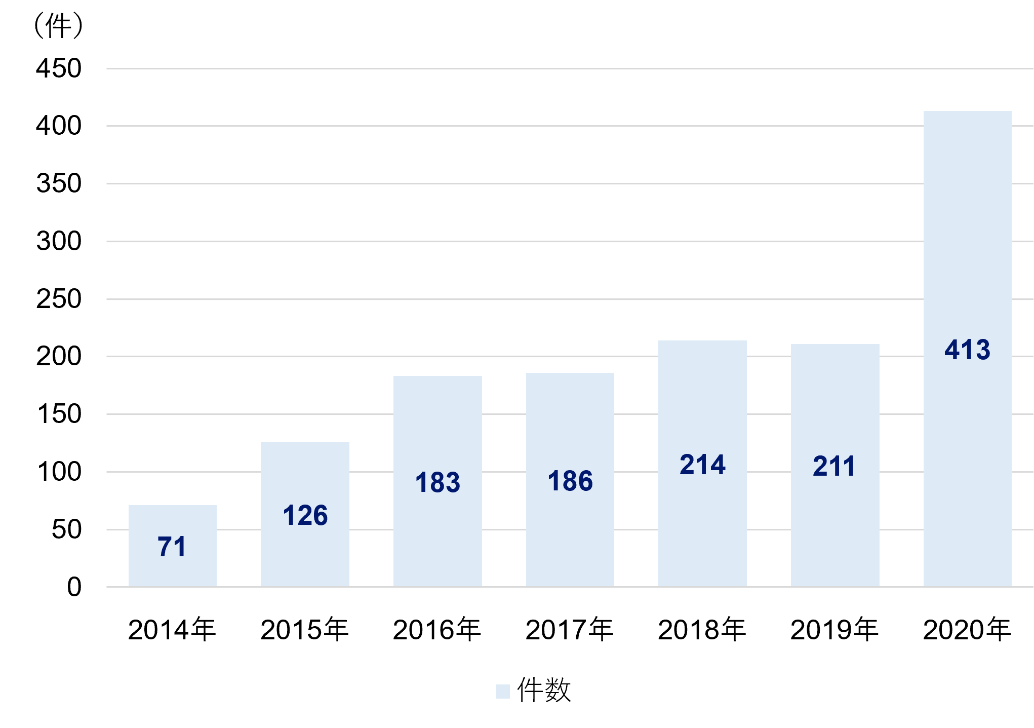 図2:半導体分野における投資件数の推移(2014年~2020年)