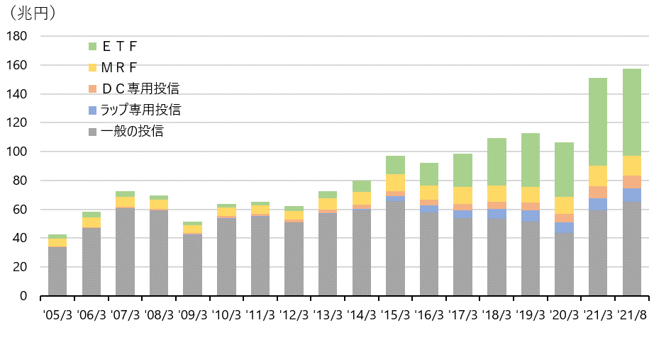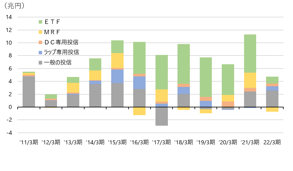 (出所)投資信託協会の統計及び個別ファンドのデータを基に野村総合研究所作成