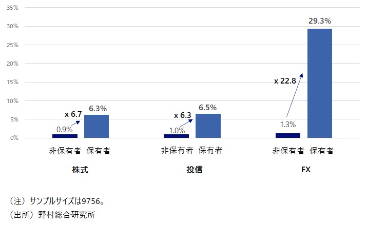 (注4)株式、投信、FXの保有者に占める世帯年収300万円未満の人の割合は、それぞれ8.7%、10.3%、9.2%だった。
