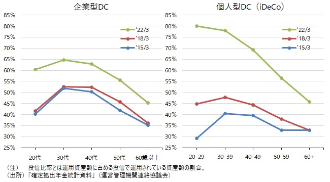 図表3 確定拠出年金(DC)の投信比率(利用者の年代別)