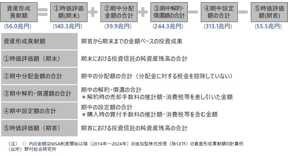図表1 投資信託全体の資産形成貢献額の定義と2014~2024年の計算例