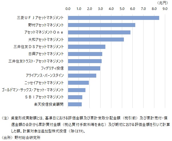 図表4 資産形成貢献額(2014~2024年)が1兆円以上の運用会社13社