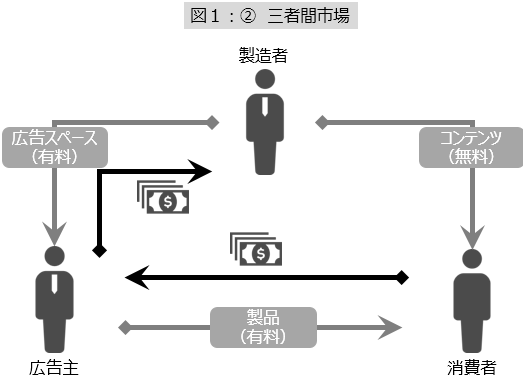 さて、ようやくプラットフォームではなぜ一方のサービスは無料で提供できるのかのメカニズムの説明に入る(前置き長くてすいません)。