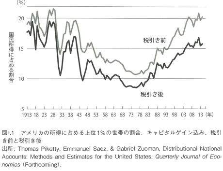 現在、アメリカをはじめとした先進国では、格差の拡大が様々な社会問題を引き起こしている。中でも一部の大企業や富裕層に富が集中することで、社会に歪みが生じている。特にアメリカでは富裕層への富の集中が顕著であり、所得の上位1%の世帯がアメリカ全体の所得に占める割合は1970年代から急上昇している(図I.1)。