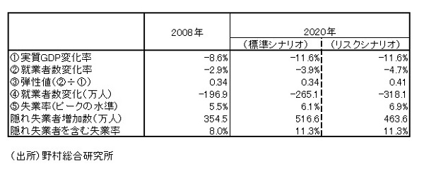 政策が十分に機能しない場合、失業者増加300万人超、失業率7%近くに