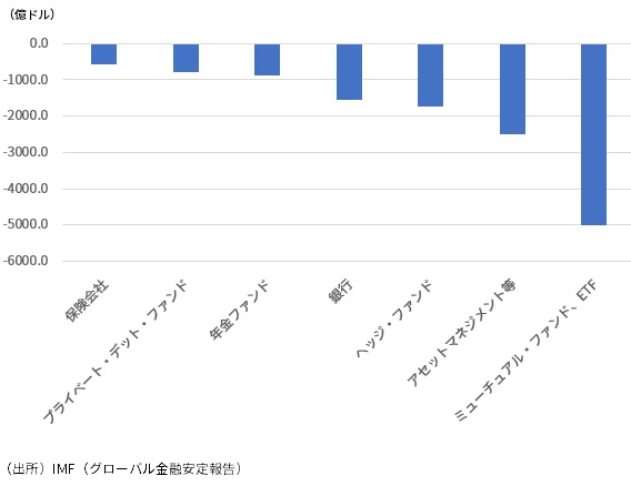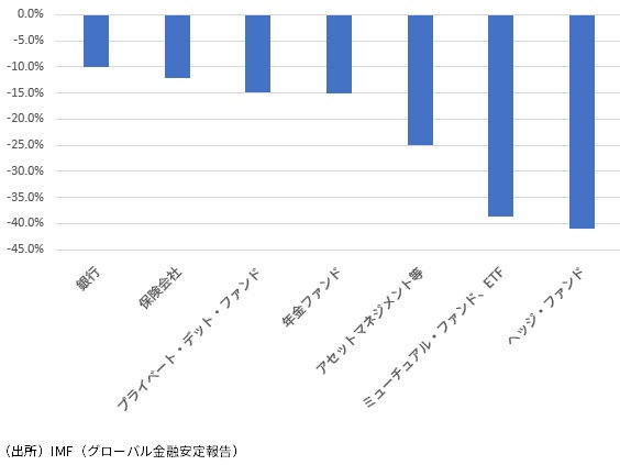 以上のIMFの試算結果から、リーマン・ショック時とは異なり、今回は、高リスク資産の価格下落などによって生じる銀行への打撃は大きくないと見られる。それに対して、より大きなリスクがあるのはノンバンクである。