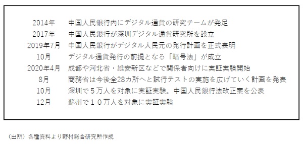 (注1)「デジタル人民元の評価上々 中国で進む実証実験」、ChinaWave経済・産業ニュース、2020年12月22日