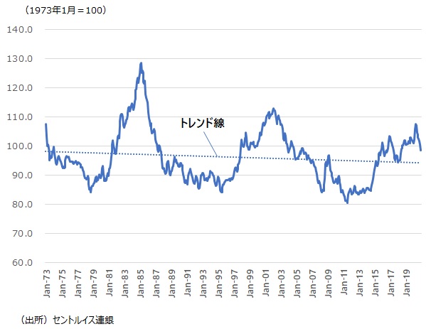 現在は、1973年の変動相場制移行から3度目のドル高局面にあることをこの指数は示している。