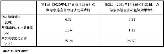 この経済損失は、今年1月から3月にかけて実施された緊急事態宣言による経済損失推定額の6.3兆円と比べれば、まだ10分の1以下の規模にとどまる(図表2)。