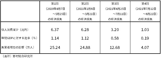(図表1) 第4回緊急事態宣言の経済損失