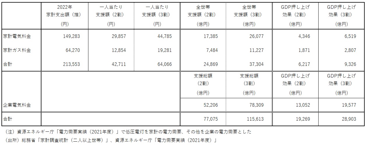 3割のケースで電気料金支援額は2.6兆円、ガス料金も含め3.7兆円(GDPを0.17%押し上げ)