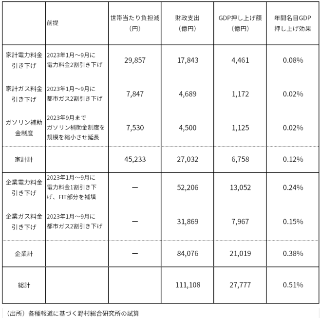図表1 物価高対策の経済効果試算