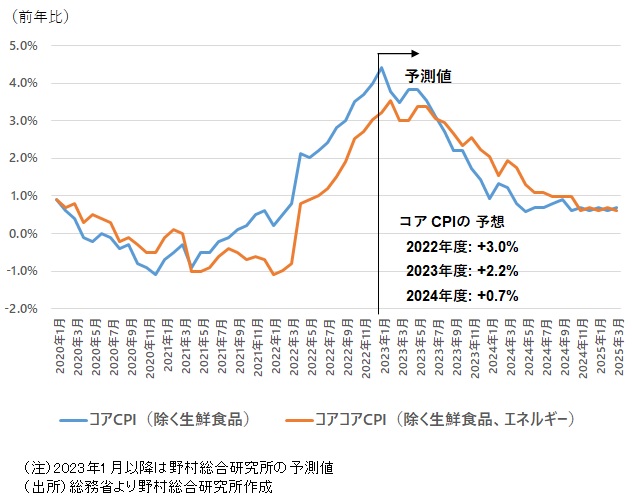 全国消費者物価は1月分の前年同月比+4.4%程度がピークに
