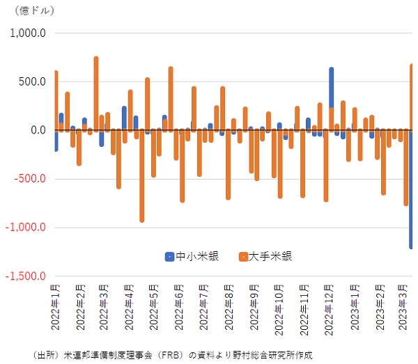 図表2 米国中小銀行と大手銀行の預金の週次変化