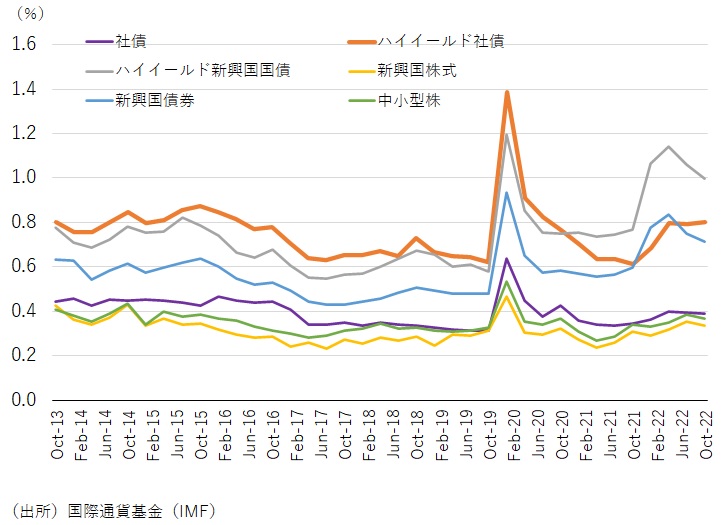 投資ファンドの投資対象資産の中でも、ハイイールド債や新興国の債券の流動性は特に低く、投資ファンドがそうした市場の混乱を増幅しやすい、と考えられる(図表2)。