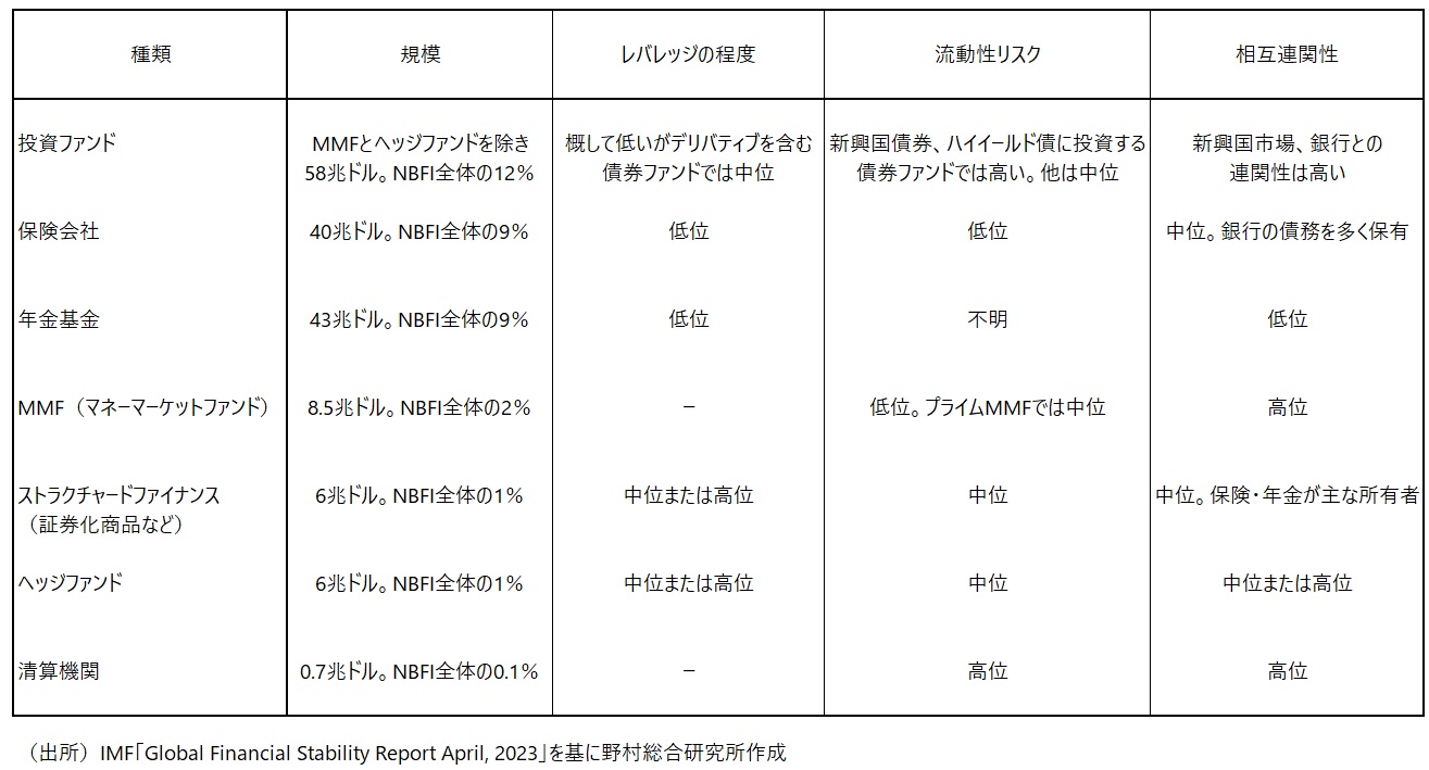 図表1 主要なノンバンク(非銀行金融仲介機関:NBFI)の脆弱性