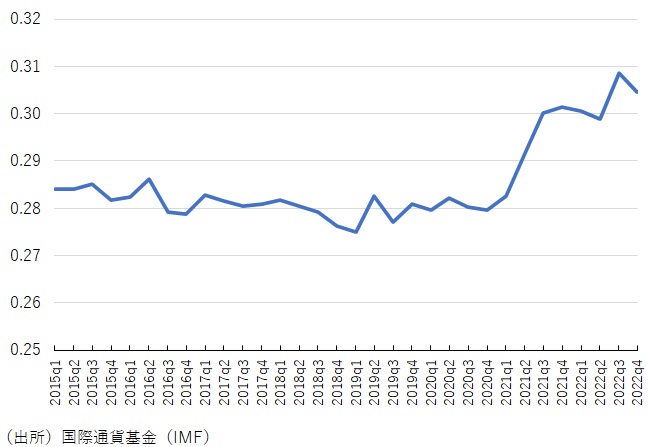 しかし現在は、中央銀行は物価高騰という課題を抱えているため、金融面でのショックが生じる際にも、積極的な金融緩和策の実施に慎重となる可能性があるだろう。