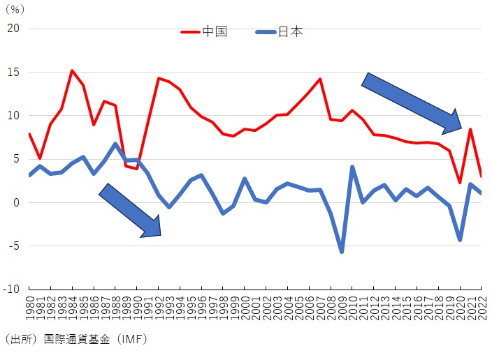 中国経済が、物価の下落と不動産価格の下落の「ダブル・デフレ」に陥るリスクが高まる中、バブル崩壊後の日本の経験が想起されている。中国も日本と同じような長期にわたる経済の低迷局面に陥るのでは、との議論が出ている(コラム「 世界経済『静かなる危機』①:中国経済は日本化するか?(上):ダブル・デフレと深刻なディレバレッジ(資産圧縮)のリスク 」、2023年8月8日)。