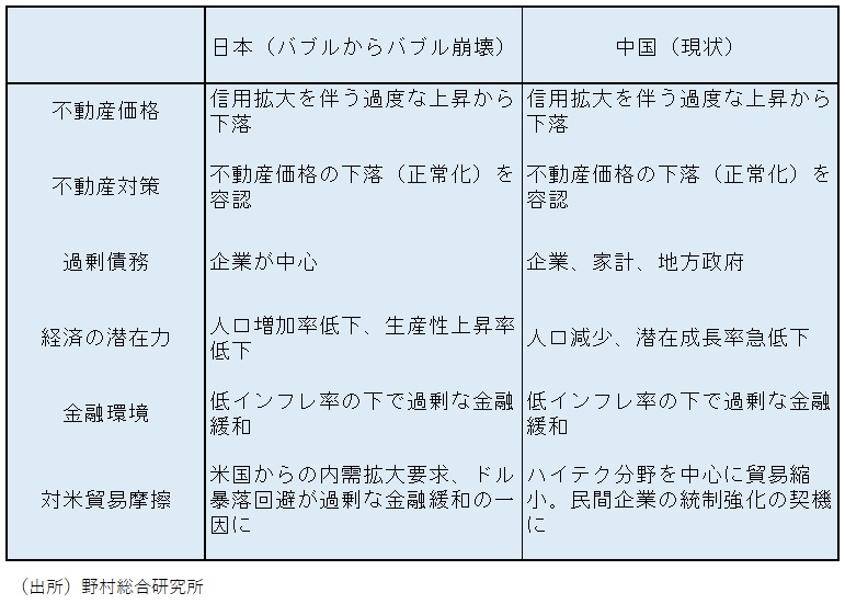 図表2 日本のバブル崩壊と中国経済の現状との比較