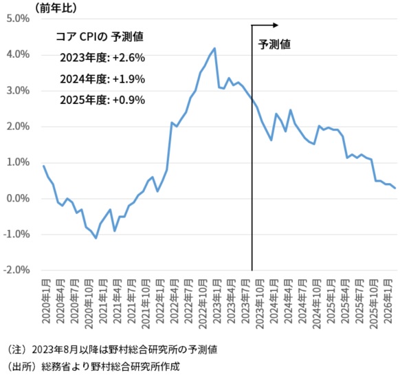 物価が安定的に2%を下回るのは2025年までずれ込む可能性