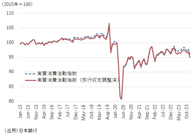 図表1 実質消費活動指数は2023年10-12月期に顕著に下振れ