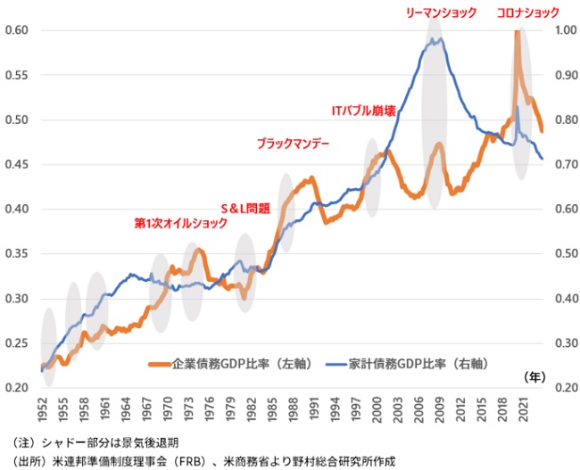図表1 米国企業・家計債務サイクルと経済・金融情勢