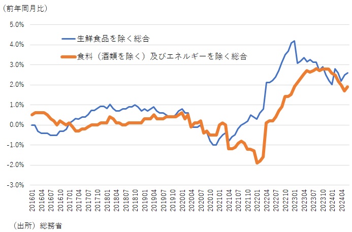 図表1 消費者物価(除く食料(酒類を除く)及びエネルギー)の推移