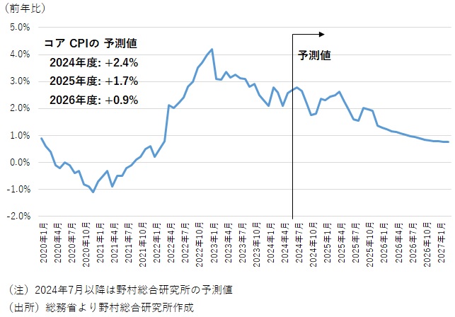 こうした補助金制度の変更の影響などを踏まえると、コアCPIは7月がピークとなり、その後は次第に低下していくことが予想される。