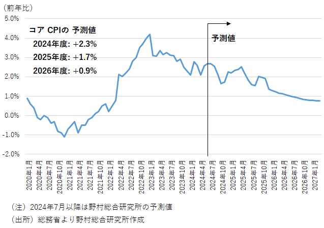 図表2 コアCPI(全国消費者物価)の予測値