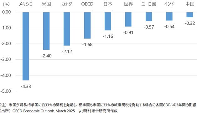 図表 相互関税の経済効果を再推計(平均関税率は約33%)