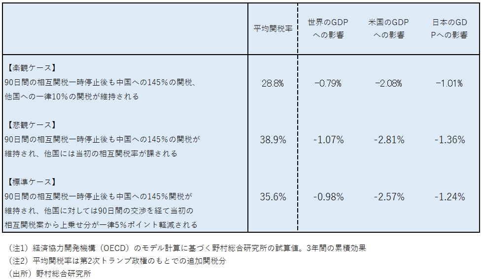 図表 3つのシナリオに基づく相互関税の経済効果再推計