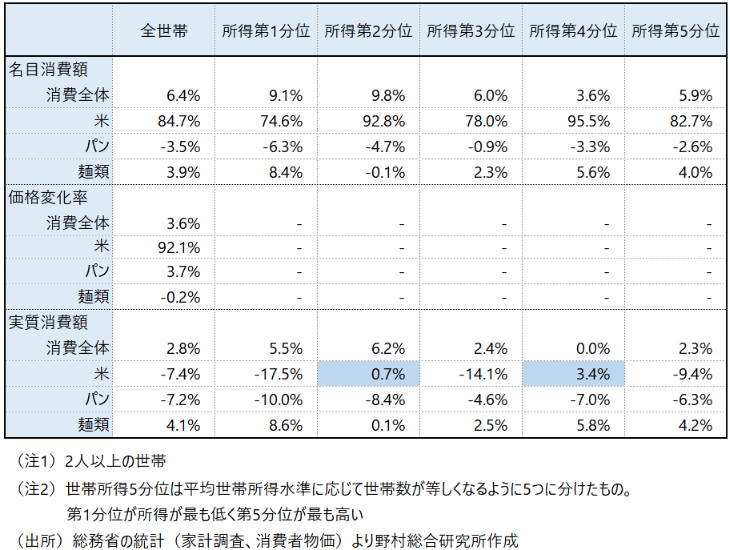 ただし、コメの価格がこれほど高騰する中でも、コメの購入量が大幅には減っておらず、また、パンなど代替的な消費財に大きくシフトしていないと言えるだろう。